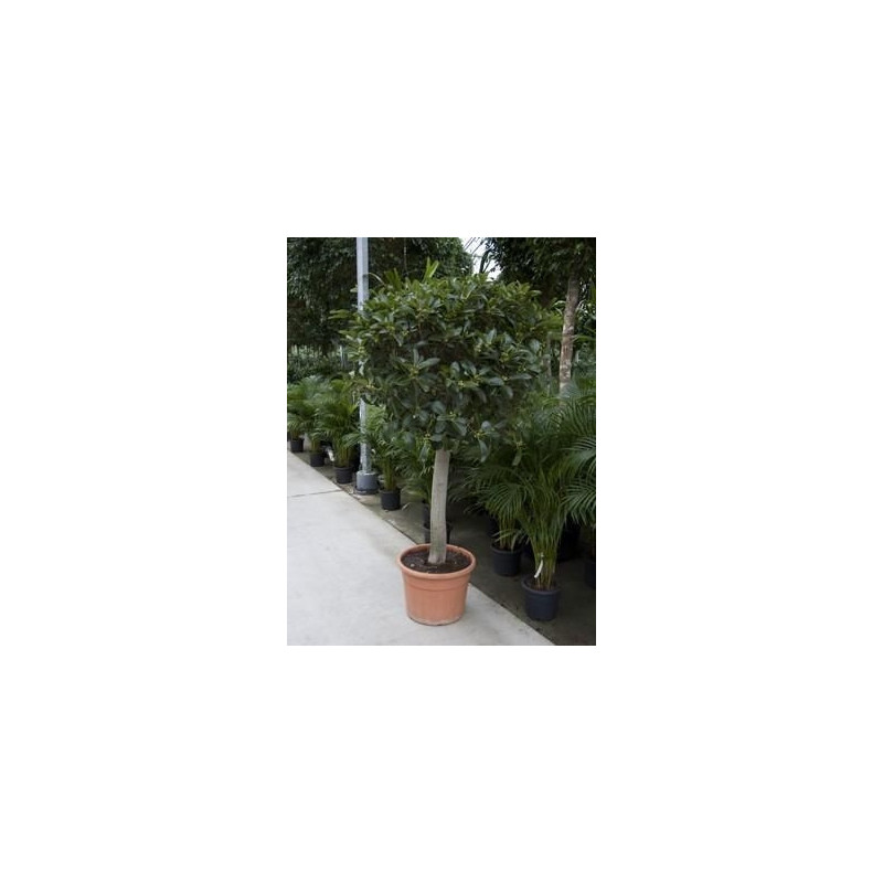 Plante verte , de grosse taille , feuilles persistantes , ovales et luisantes , denses , de couleur verte foncée . Port érigé et équilibré . Exposition éclairée sans soleil direct . Utilisation en décoration végétale d'intérieur , pot , bac ou jardinière .