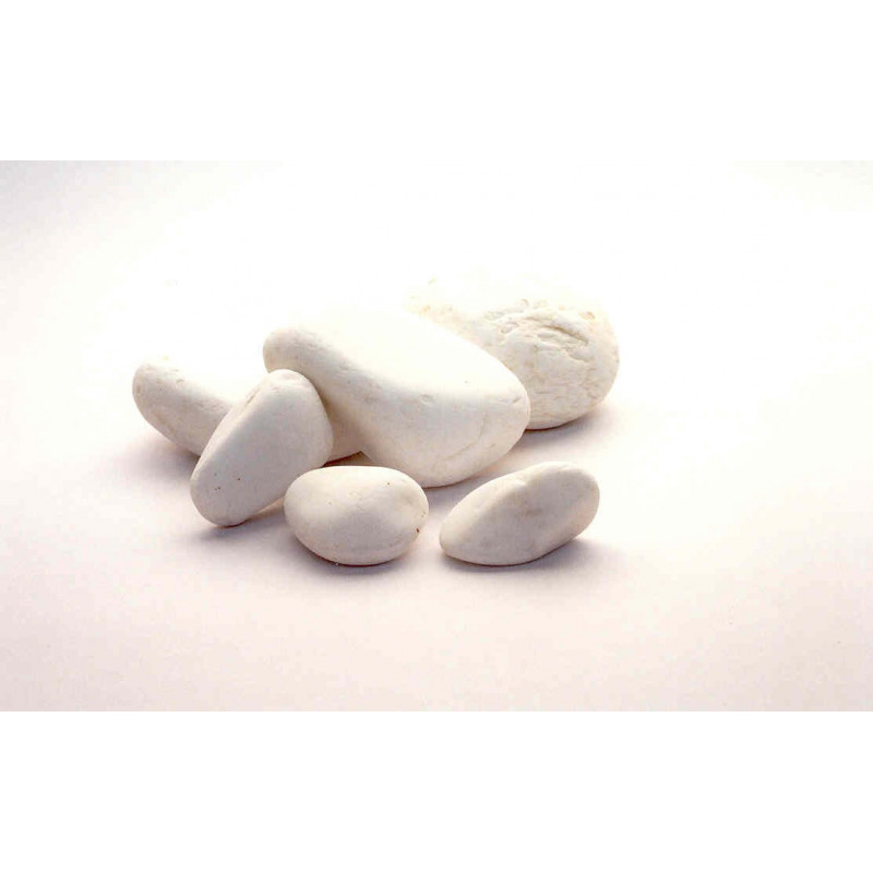 Galets décoratifs , de type marbre d'un blanc pur de calibre 6 à 10 cm , idéal pour décorer les massifs à caractère exotique , de plantes vivaces et graminées , les aménagement japonisant , et les rocailles , bac et jardinière également , épaisseur moyenne 8 à 10 cm .